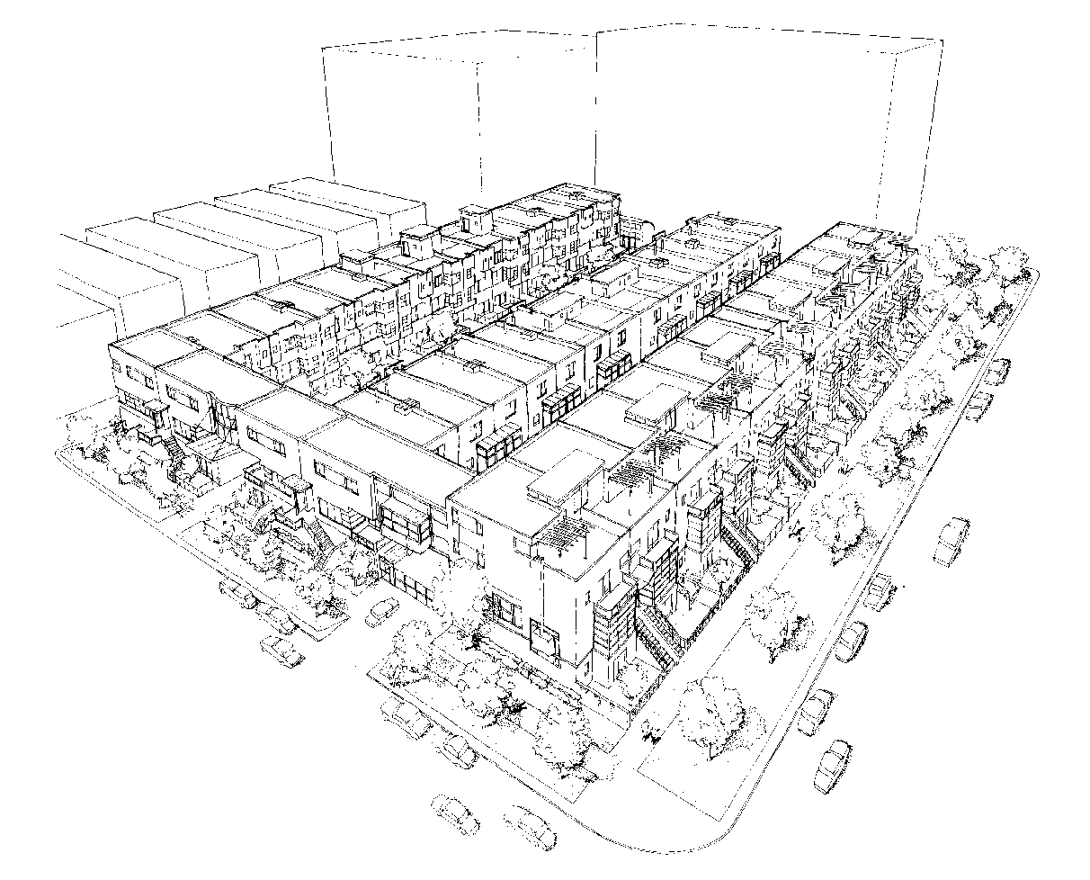 A 44 unit, 120,000 square foot townhouse development located along Lake Michigan in the Hyde Park area of Chicago, the project has 13 unit types ranging in size from 1,800 sf. to 3,400 sf. Individual units are 3 and 4 stories and feature roof decks, studies, sun rooms and private gardens. Units that face the lake feature large glass bays, courtyard units front a 48 x 300 foot community garden space.